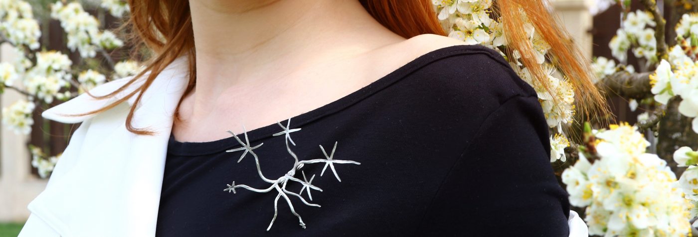Sterling silver star brooch Collection: Nature’s vibrations From the same collection you can also find: Stars earrings Handmade Unique Size: 8×7 cm Weight: 5.80 g of sterling silver The product is delivered packed in a black rigid box with string and Allegra’s label